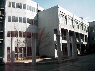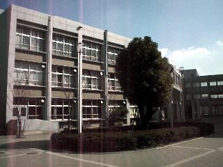 体育館側から専門教室側の校舎を望む。